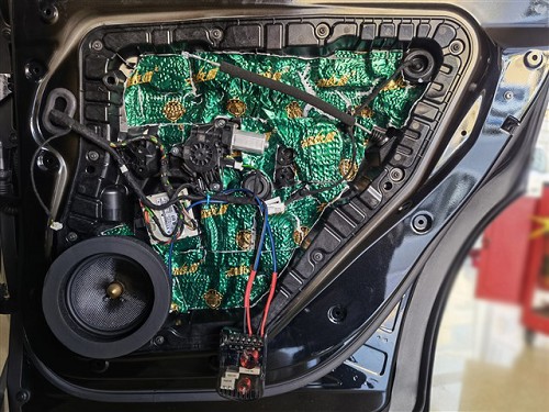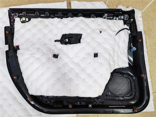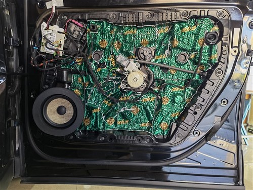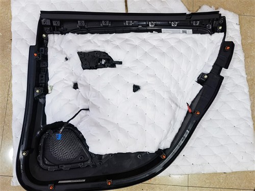 首先前后車門,先用大能超級盾將車門內外鈑金做雙層隔音處理,再用吸音棉給飾蓋做吸音處理,做完隔音,讓整個門板成為一個密封的箱體,提升喇叭的效果,也能提升車門鈑金厚度。