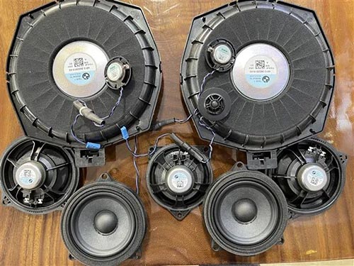 寶馬X5高端豪車,將原車喇叭拆下,喇叭個數不少,但是做工品質還是顯得十分寒酸,對比升級使用的詩芬尼喇叭,更是不在一個層面上。僅是從視覺上來看,原車喇叭和升級使用的喇叭質量就高下立判。