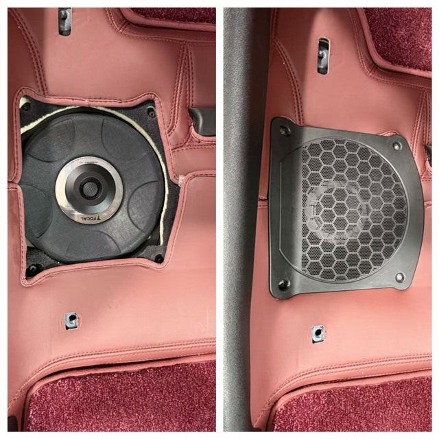 升級過程中,勁浪IS BMW 100L高中音單元精準適配前門板三角位和上方原位,無需對門板進行任何切割或改造;勁浪ISUB BMW 4低音喇叭直接安裝在座椅下方的原車位置,完美利用空間的同時,讓低頻效果更集中。