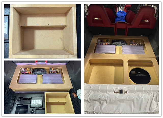 精湛的技術和專業的裝配使得音響器材完美嵌入尾箱內部,與車輛完美融合,優化了音響系統的聲場和音質表現!