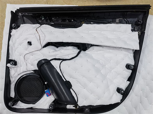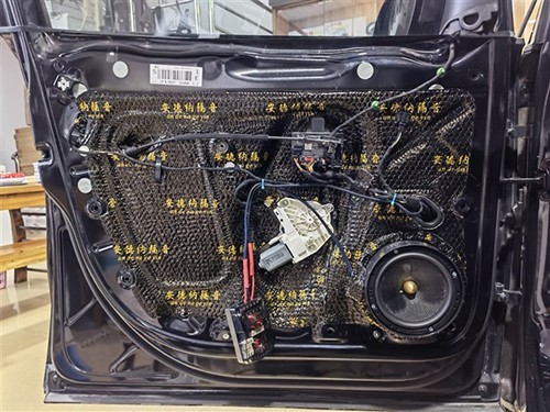 根據(jù)車主描述,愛車在低速行駛時,噪聲還不是特別的明顯,但隨著車速提高,外界的風噪就凸顯了出來,尤其是跑高速的時候,呼呼的風聲不斷的在耳邊環(huán)繞,讓人不勝其煩,因此技師使用安德納隔音材料,對汽車的門板做三層隔音處理,讓門板形成了一個密封箱體,利于中低音喇叭發(fā)聲,從而也在一定程度上阻隔了風噪的傳入。