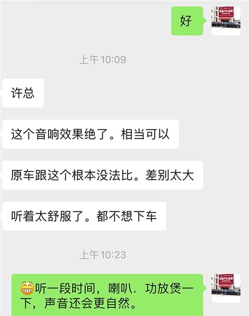后期,我們海林的改裝師還會進行回訪,車主的好評,一直以來都是我們前進的動力,希望把好音樂傳播給更多熱愛的音響愛好者們!