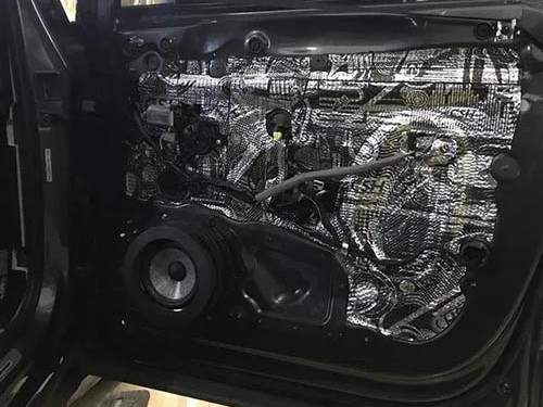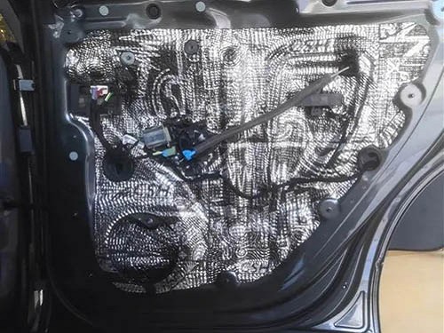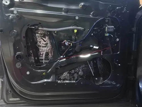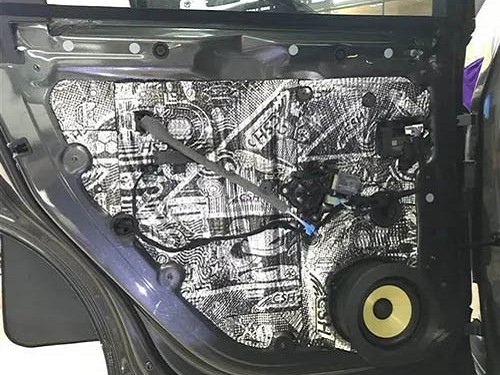 音響改裝前隔音必不可少,作為喇叭載體的汽車門板,是風(fēng)噪和共振等噪音進(jìn)入車廂的主要通道,改裝團(tuán)隊(duì)使用俄羅斯StP小炸彈+大能溫莎棉對(duì)門板內(nèi)外層鈑金及飾蓋進(jìn)行三層隔音,不僅增強(qiáng)門板的鈑金的剛性,減少鈑金震動(dòng),還可以阻隔風(fēng)噪的傳入。