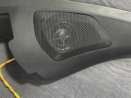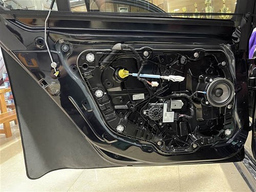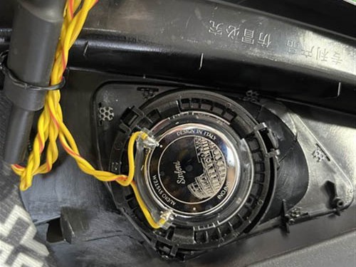接下來,想必車友們關心的新款寶馬325Li原車音響到底是啥樣子。一同從圖片中探下究竟。寶馬325Li原車前門只有一對中音喇叭,后門也是一對中音,兩只低音位于前排座椅底下(寶馬各車系的標配),后尾箱左側有一只巴掌大的功放。因此,僅從搭配上看,原車音響是不完整的,很明顯是缺少高音,沒能將音樂的高頻部分表現(xiàn)出來,二是小功放,也難以有足夠的功率推動喇叭發(fā)音,另外,在拆出的喇叭也直觀地看出,其用料差,做工粗糙,是難以滿足對音樂有要求的車主。