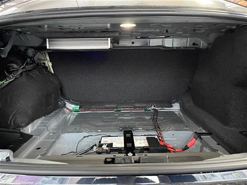 在安裝上,講下高音與功放,高音是選自與寶馬325Li完全匹配喇叭罩,安裝效果,猶如原裝。詩芬尼BO 10 DSP功放安裝在后尾箱,吊頂不占尾箱空間。特別值得一提的是,每個喇叭,功放都是專車專用線束對接,不用剪線,與原車直接對插即可。