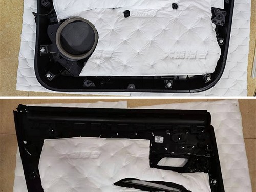 車內的風噪聲有很大一部分是從車門板位置傳遞到車廂內的。海林技師對車門板進行加強型隔音處理措施。首先用藍金剛對車門鈑金層進行雙層密封和止震處理,然后再用超級溫莎棉對車門飾蓋進行吸音處理,將風噪層層隔絕在外。