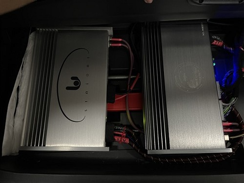 兩臺功放隱藏安裝后備箱的備胎位上,完全不占用空間