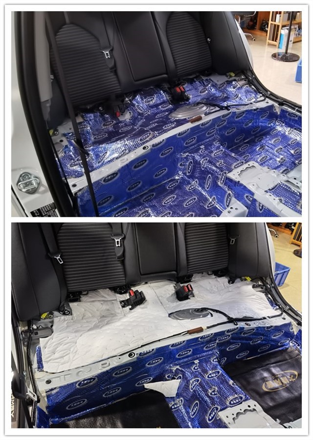 低頻噪音、發(fā)動機(jī)噪音、輪胎噪音通過底盤表現(xiàn)出來具有很強(qiáng)的穿透性,是汽車噪音最主要的表現(xiàn)形式,也是影響汽車駕駛舒適性的主要原因。所以改裝師在底盤貼上大能藍(lán)金剛和噪音終結(jié)者,重點(diǎn)解決發(fā)動機(jī)噪音和路噪,有效抑制共振,降低大量的發(fā)動機(jī)和排氣管熱量向駕駛室傳導(dǎo)。