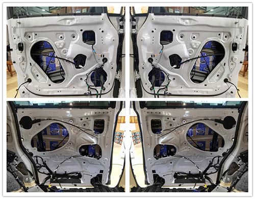 前后門板使用大能藍(lán)金剛進(jìn)行第一層隔音處理,有效加強(qiáng)鈑金剛性