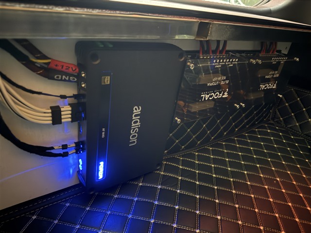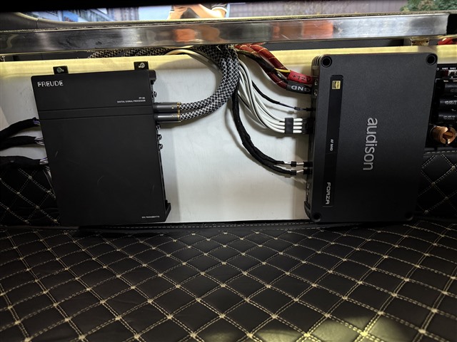 弗萊德FP-8A音源處理器與歐迪臣AF M4D功放并列安裝,不占尾箱空間