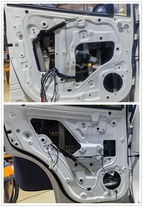 前后門板進行第一層隔音處理,門板第一層使用安德納進行條貼止振,加強鈑金剛性