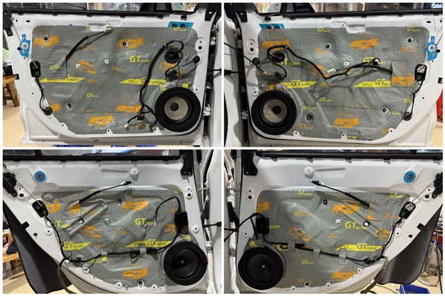 原車門板僅有一層塑料薄膜,隔音效果有限。技師拆除原薄膜后,使用GT隔音材料對四門進行了雙層隔音處理,有效抑制振動并提升車門密封性,為喇叭提供更好的工作環(huán)境。
