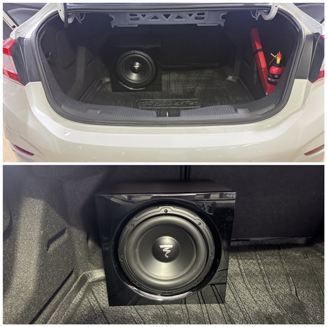 弗萊德FD-1V2功放巧妙放置在尾箱下沉處,節(jié)省空間且利于散熱。勁浪SUB 10低音炮放置于后備箱,通過合理箱體設(shè)計,既保證低頻效果,又盡可能減少對后備箱空間的占用。