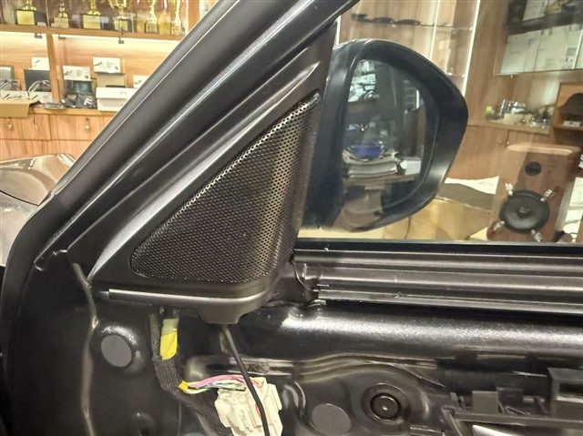 勁浪ASE-165高音單位安裝在原車(chē)門(mén)板三角區(qū)