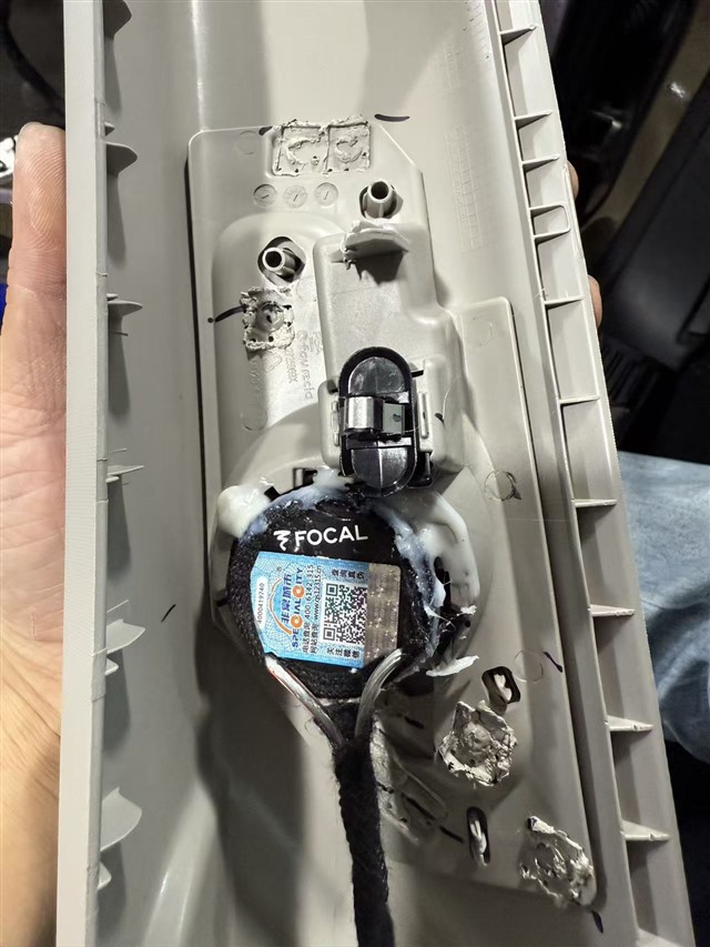 勁浪PS 165 FE高音單元安裝在A柱后,我們的改裝師把喇叭與A柱在背面的接觸位置進(jìn)行了固定,避免松脫。