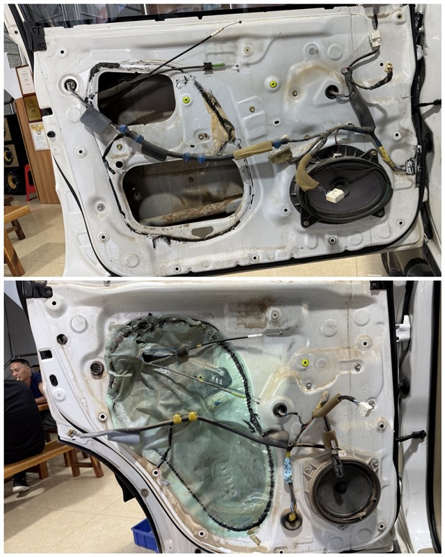 原車門板只有后門板有一層薄膜,無法有效隔絕噪音
