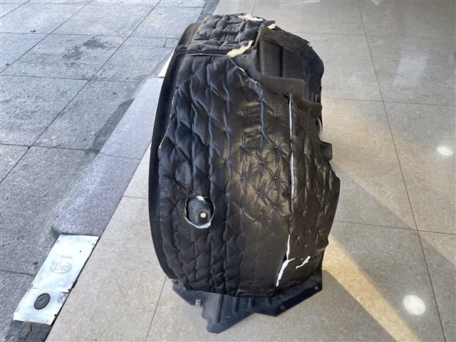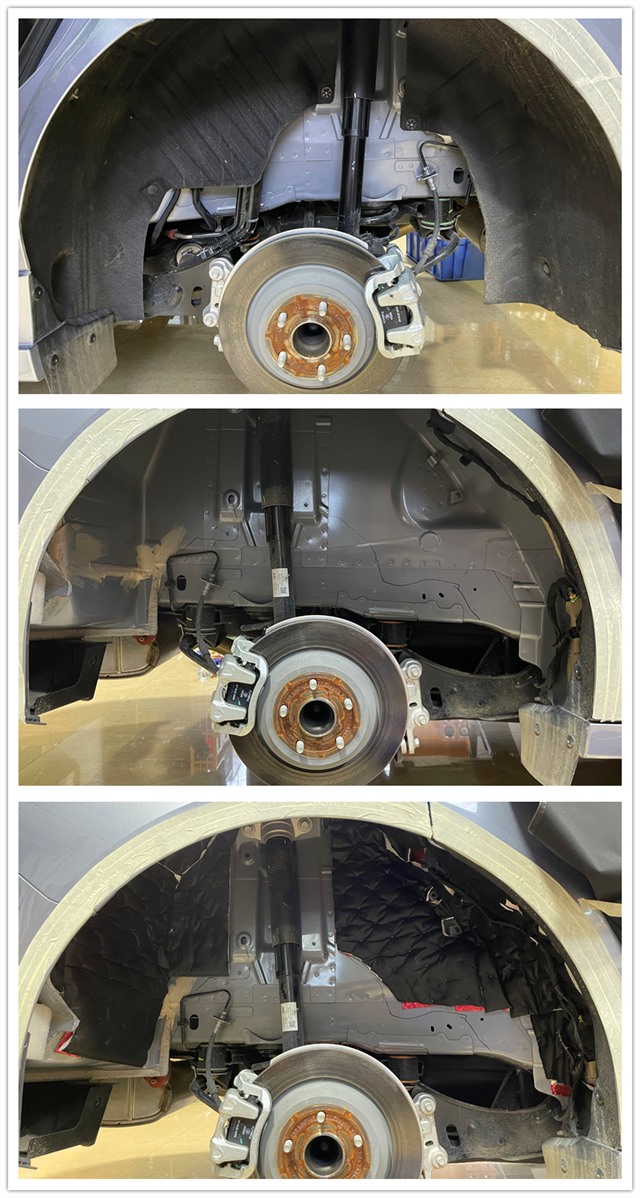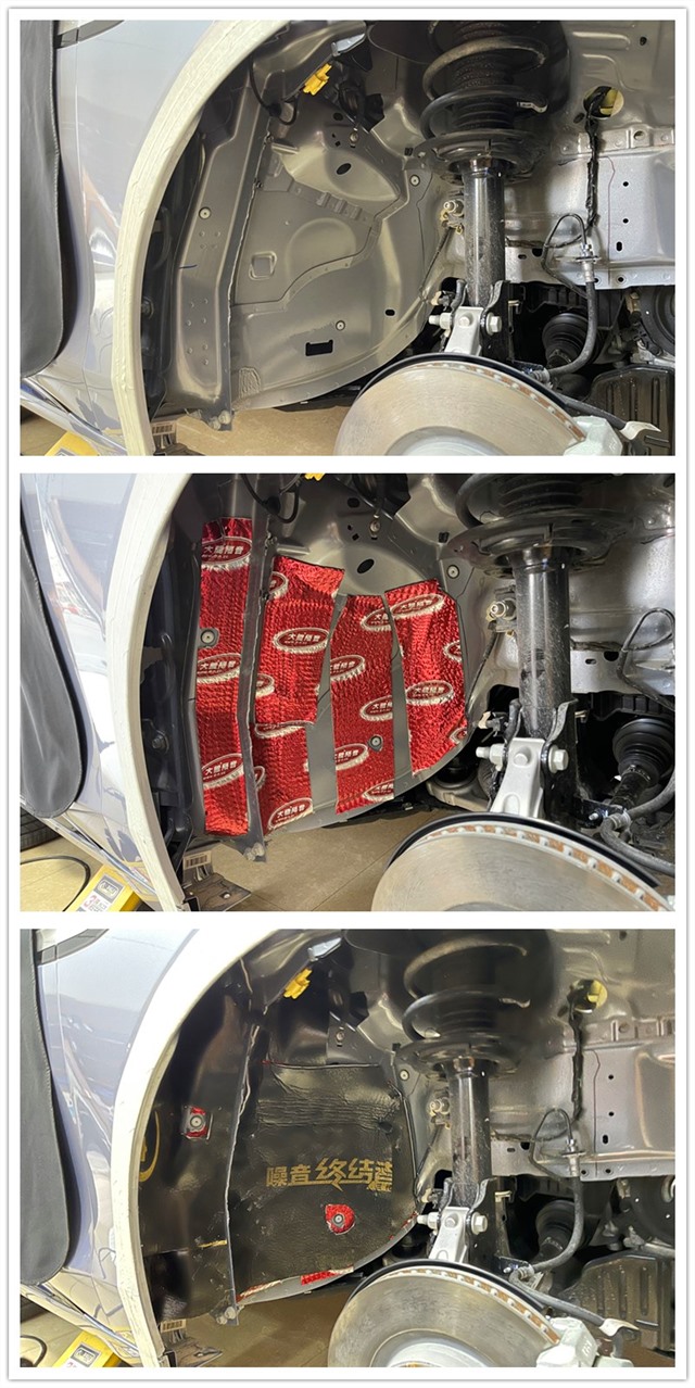 拆下來的葉子板使用大能隔音材料進行吸音隔熱處理,吸收車輛輪胎產生的噪音,阻擋聲音傳遞到車廂內。