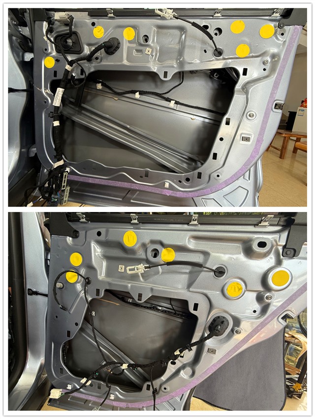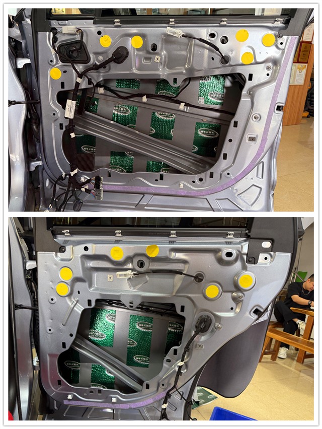 將前后門板表面的鈑金進行清潔,確保隔音材料的粘貼效果更加牢固