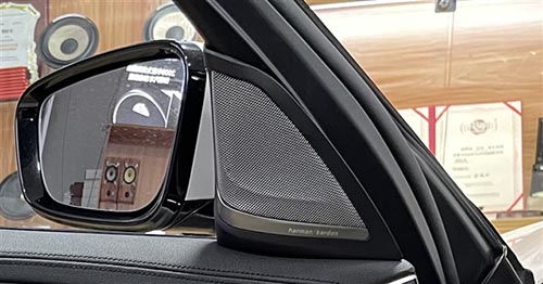 本次升級選擇了法國勁浪專為寶馬車型打造的專用喇叭系列。前聲場無損升級勁浪IS BMW 100L兩分頻,高音喇叭巧妙地原位無損安裝在門板三角位,并換上了哈曼卡頓的金屬網罩,這一細節如同畫龍點睛,瞬間提升了整輛寶馬X3的內在格調與品質感。