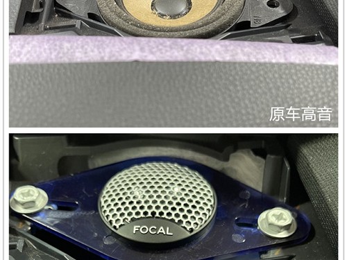 根據前聲場的原車喇叭大小,改裝師選用了一套勁浪ISU200 8寸兩分頻進行原位無損替換。高音無損安裝在儀表臺兩側,中低音喇叭則無損安裝在前門板。清晰明亮的高音和飽滿有力的中低音,音色豐富且層次分明。