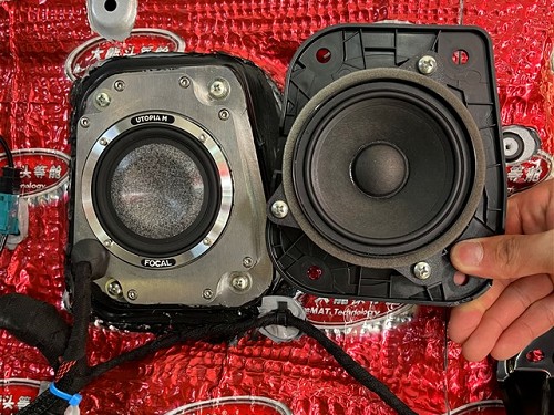 前后門板使用大能紅派進行雙層隔音后,原位無損安裝喇叭