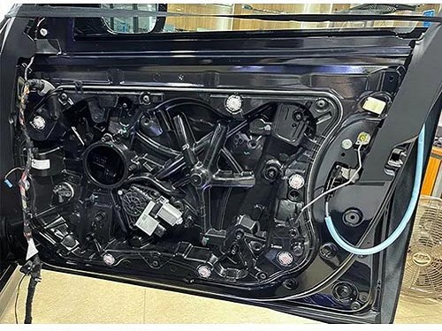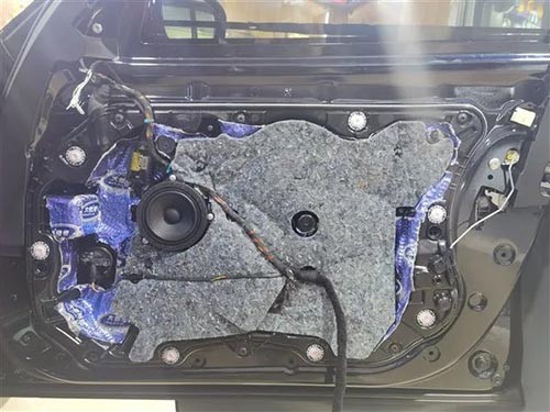使用專業(yè)隔音材料對(duì)四門進(jìn)行隔音處理,讓整個(gè)車廂成為一個(gè)密封的箱體,提升喇叭的效果,也能提升車門鈑金厚度
