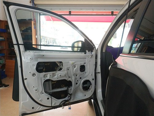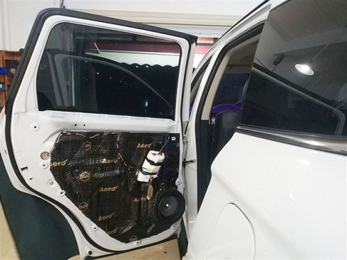 原車門板的隔音措施欠缺、密封不嚴,導致了嚴重的風噪噪音,對此技師使用俄羅斯StP航空炸彈+AC06棉對門板進行了隔音處理,良好的密封性將門板包裹嚴密,有效的抑制了門板的振動,并將風噪阻隔在外,而且也為喇叭提供了良好的工作環境。