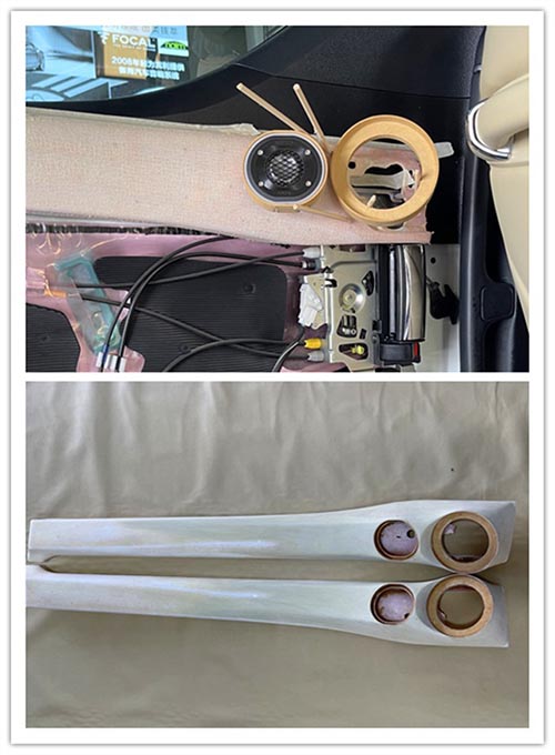 前后門板使用環保隔音材料進行隔音后,在門板原位無損安裝中低音喇叭
