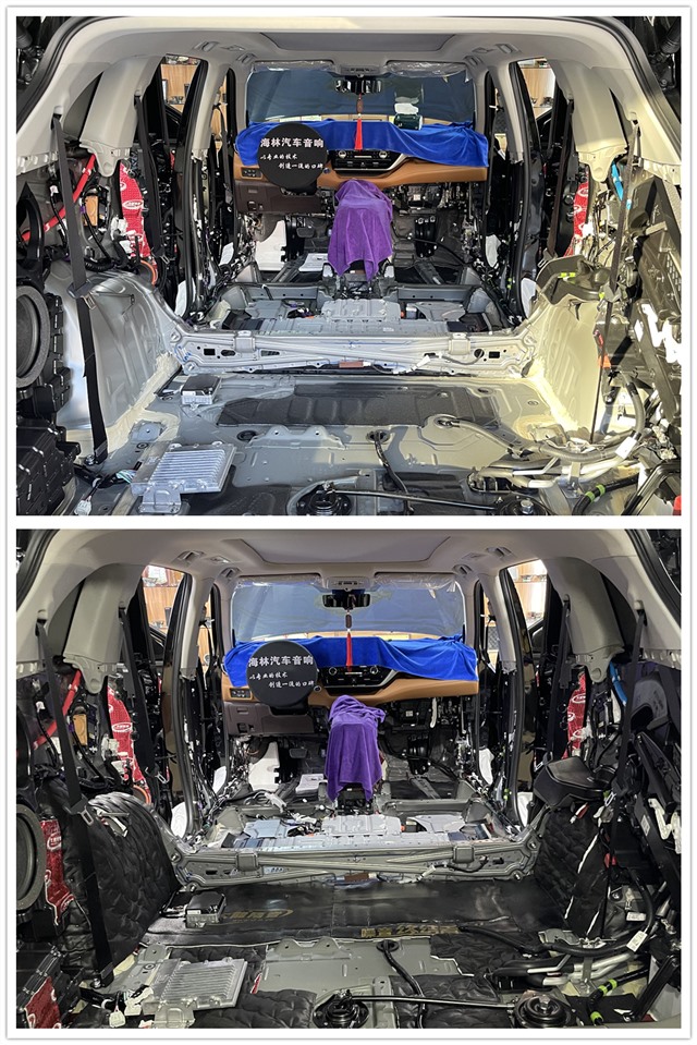 現在很多車主都比較傾向做汽車隔音,畢竟隔音的好處實在太多了!做隔音的原因很簡單——汽車在行駛的時候自身就是一個噪聲源,而駕乘的人員就處在這個噪聲源的中央,特別是高速行駛時,路噪非常明顯!此時再播放音樂,更是不堪入耳!第四代豐田漢蘭達車主不甘忍受在這樣的環境下駕駛,最終來到泉州海林升級全車隔音。