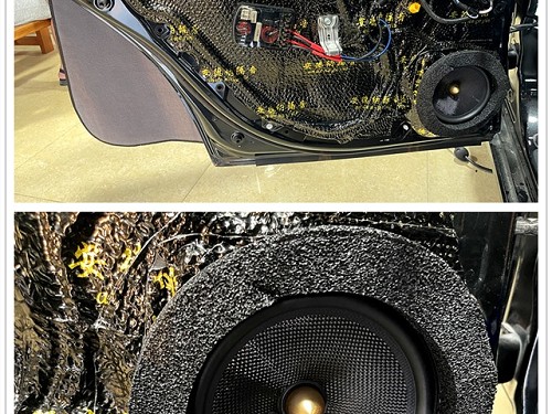 后門板使用安德納隔音材料進行專業隔音后,原位無損安裝勁浪165A-GL中低音喇叭