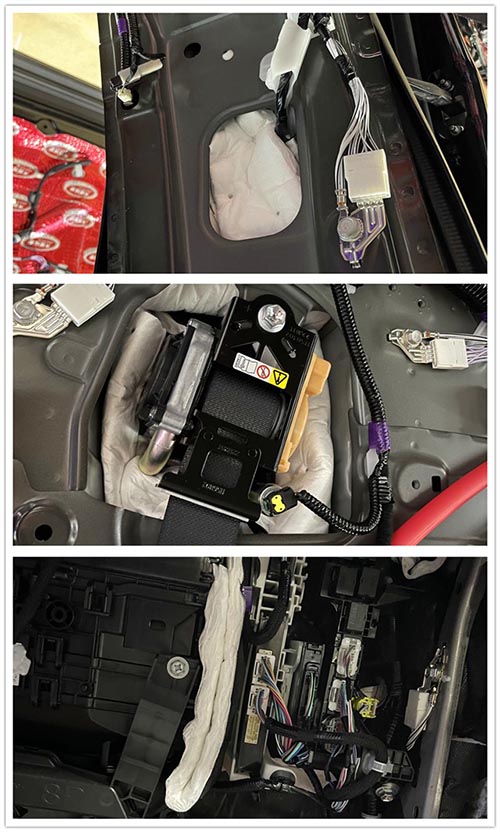 底盤和后備箱的鈑金面積較大,但原車隔音措施簡單,因此容易產生共振和共鳴噪聲。改裝師使用大能紅派及噪音終結者對底盤做了雙層隔音處理,減少共振噪聲的同時,還有效增強了鈑金的剛性。后備箱、后輪轂也進行了雙層隔音,有效降低備胎窩空腔共鳴噪音。